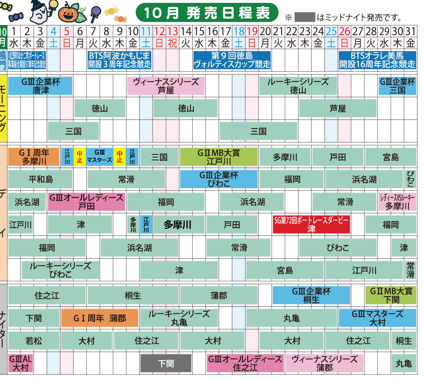 SG、G1、G2、G3、一般戦の5つのグレード別、月別に分かれたスケジュールをご紹介いたします。